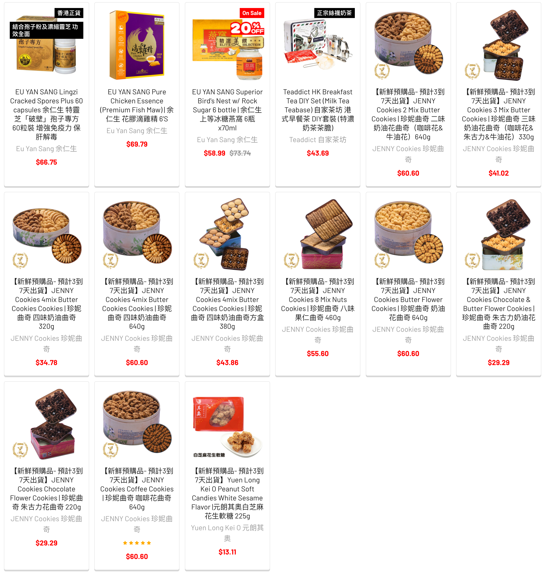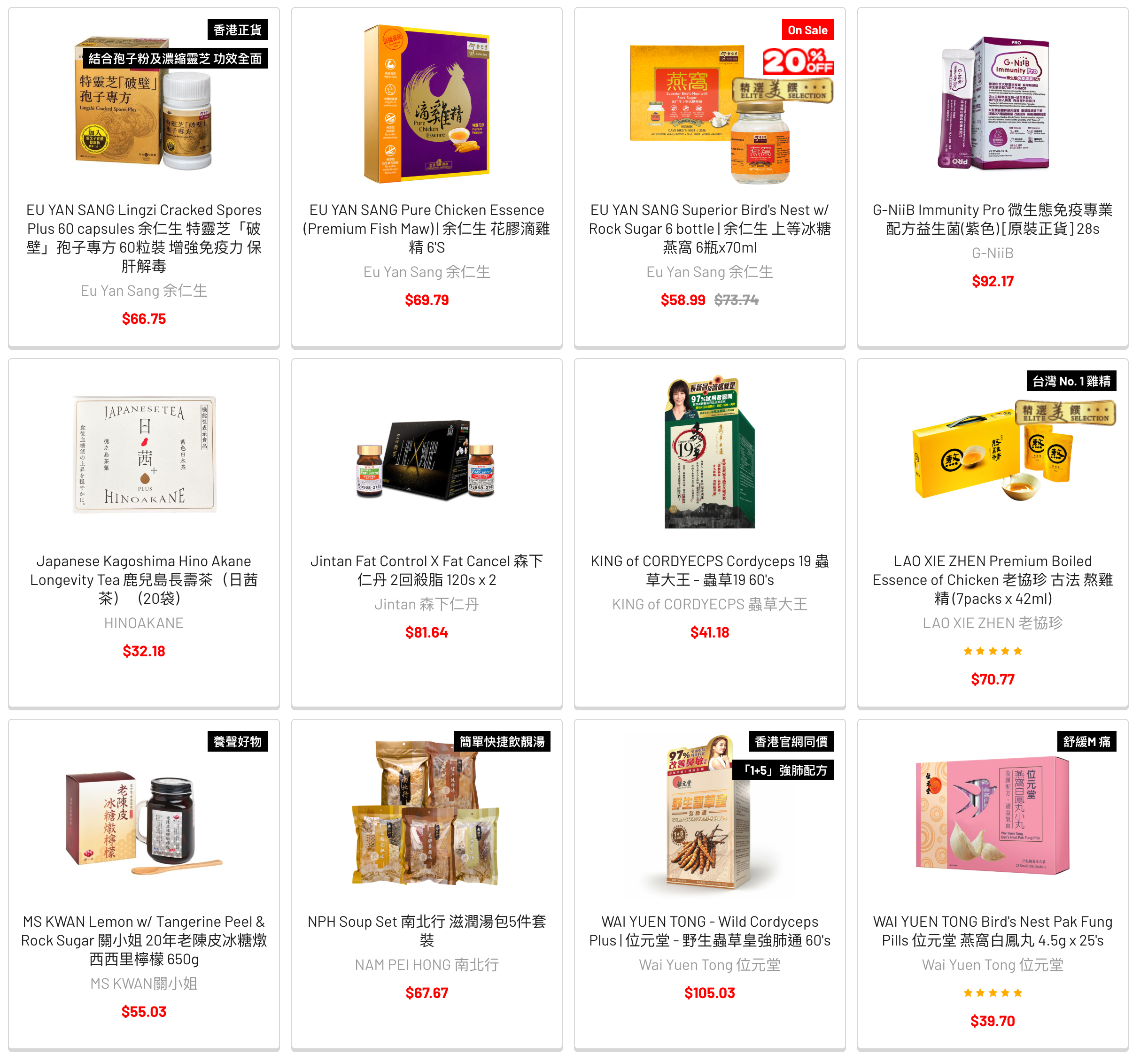 鵝油油雲吞麵、厚椰乳花膠等產品,價値$117.77 套裝只售 $88。