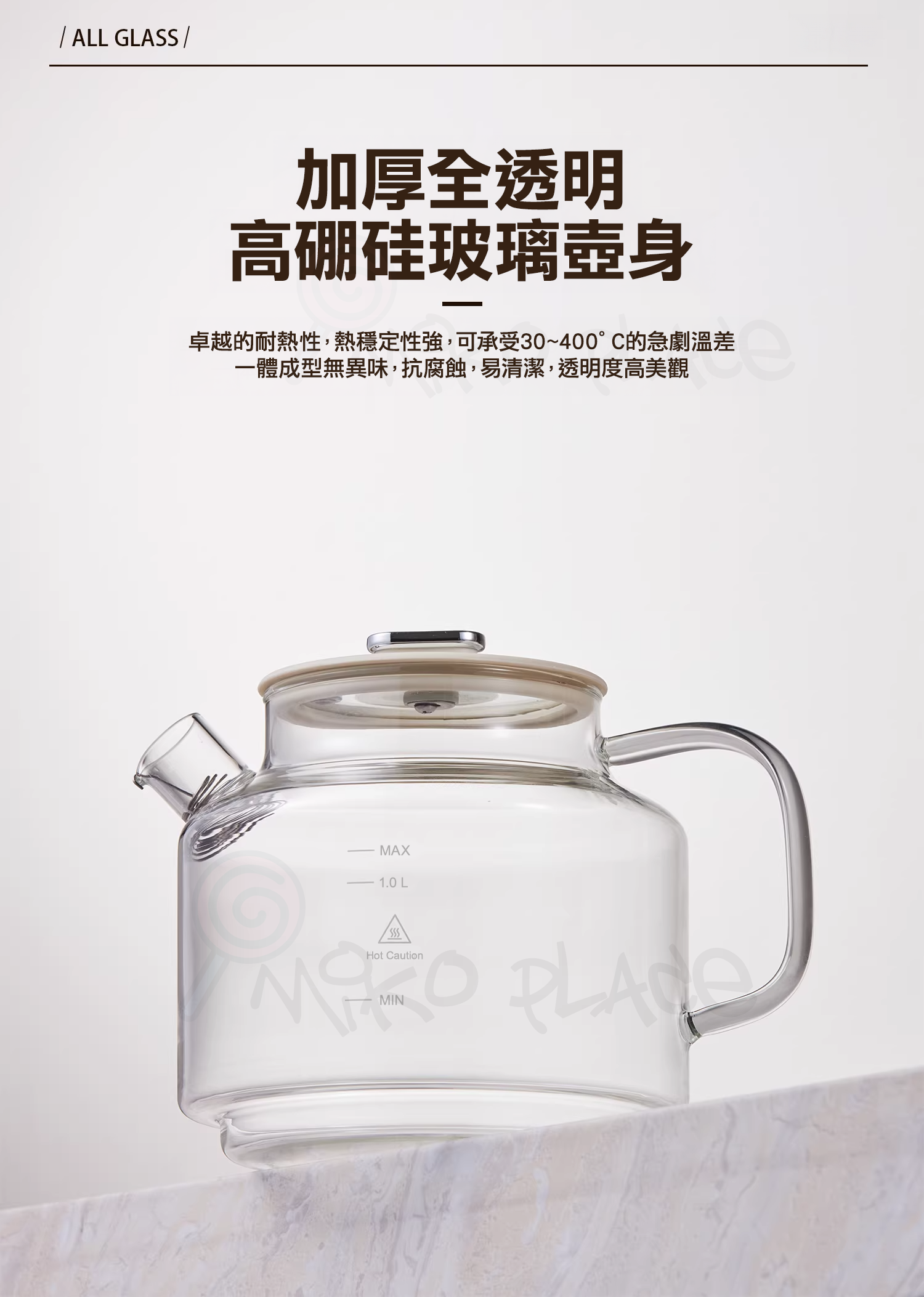 加厚全透明高硼矽玻璃壺身